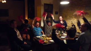 Drie weken lang ben ik in Saint-Pompon geweest, het was voor mij één groot feest. De bedoeling was om in Château Norbert een hele waslijst af te werken en daarin ben ik meer dan geslaagd. Van de eerdere weken bracht ik u al op de hoogte, de laatste week begon met mijn verjaardag. Ik had gedacht dat die dag geruisloos voorbij zou gaan, maar de werkelijkheid bleek anders. Niets deed vermoeden dat het dorp zich 's avonds in het café verzamelde om gezamenlijk naar ons huis te trekken, gewapend met een taartvan bijna een meter groot. En dan de muziezk. Bij het liedje Connemara van Michel Sardou beginnen alle Fransen plotsklaps met een zakdoekje te zwaaien.